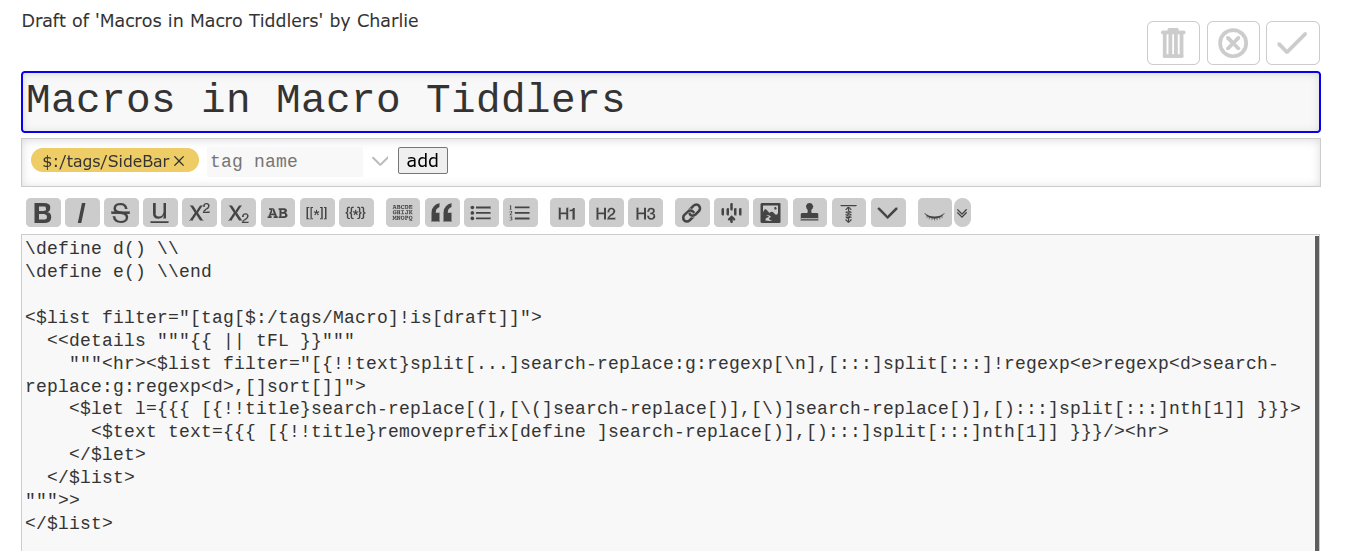 <$let m={{{ [tag[$:/tags/Macro]!is[draft]get[text]join[...]] }}} >