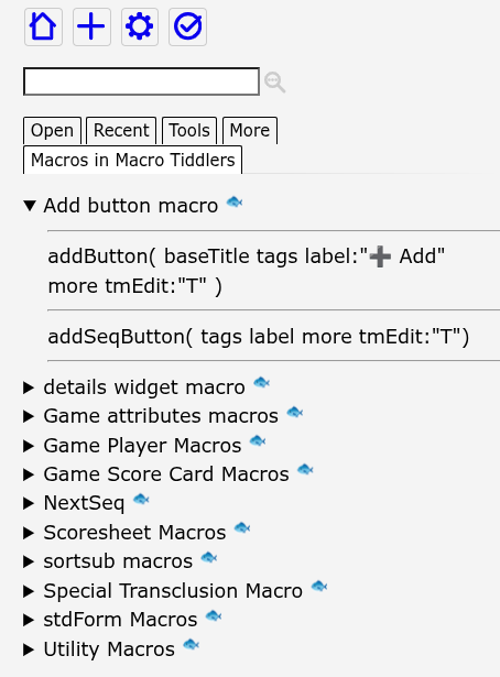 A no-fuss no-muss sorted list, displayed in a sidebar tab, of all macros in all tiddlers tagged as macro tiddlers.