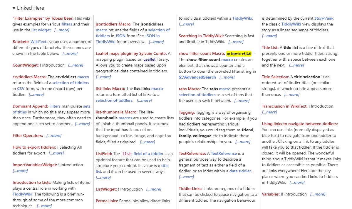 You can test this by downloading the following and dragging the resulting file onto a wiki backlinks.json (1.5 KB). If you try it on tiddlywiki.com, open a tiddler, say, Filters, and you can expand the footer to see something like this: