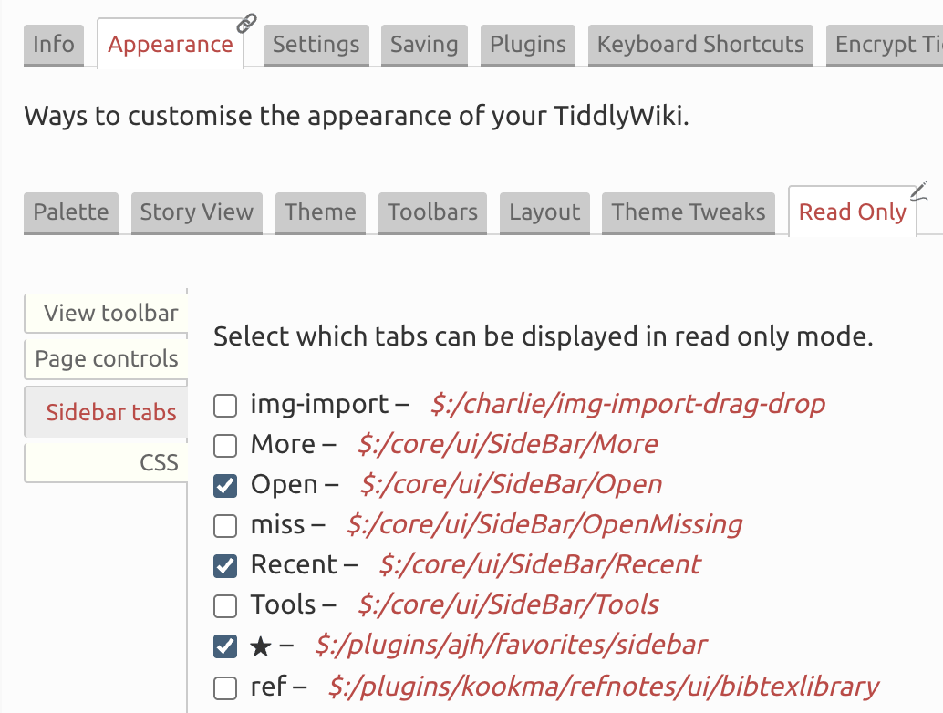 On the “user is not in edit mode” issue — I think we’ve overlapped on threads about this before, but here’s a pointer to the read-only solution that easily sets up a settings panel where you indicate which sidebar tabs appear: