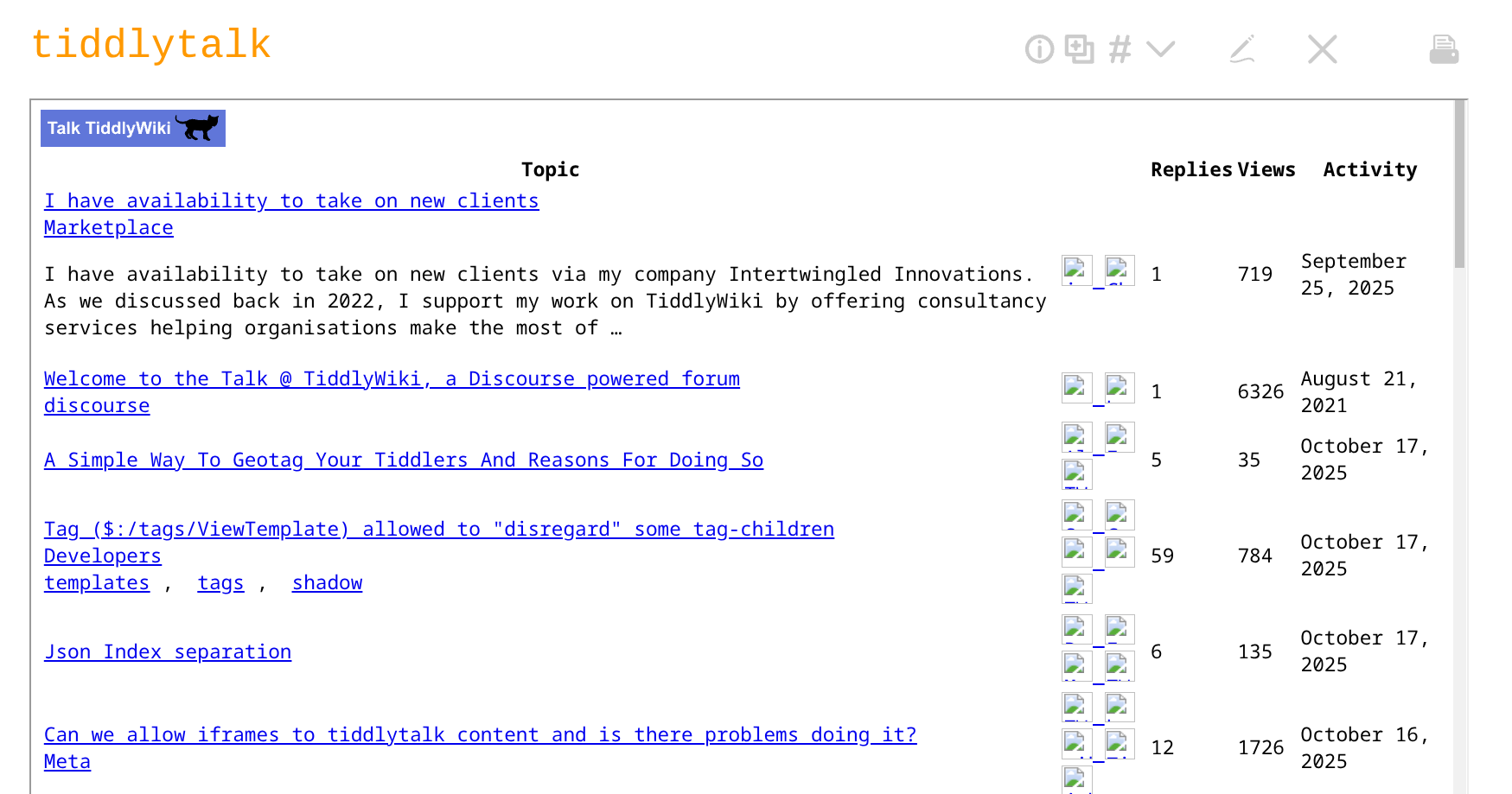 Personally I don’t see much room for misuse as all it does is empower access to out resources, the way tiddlywiki works nothing will touch the server unless the specific tiddler is opened. This allows a whole new world of metadata to be maintained in a wiki as an overlay to content in discourse. For example we could curate “how to” or “plugin” posts in a Wiki.