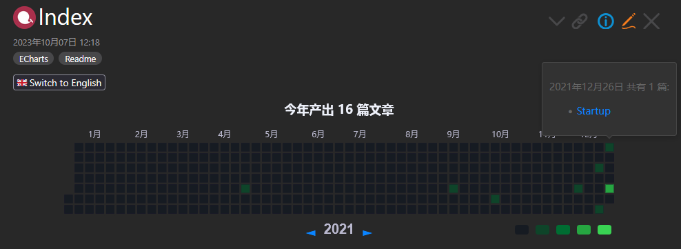 While this is not the same “heat map” style as a GitHub contribution calendar, it does give you a visual timeline overview of your change log entries.