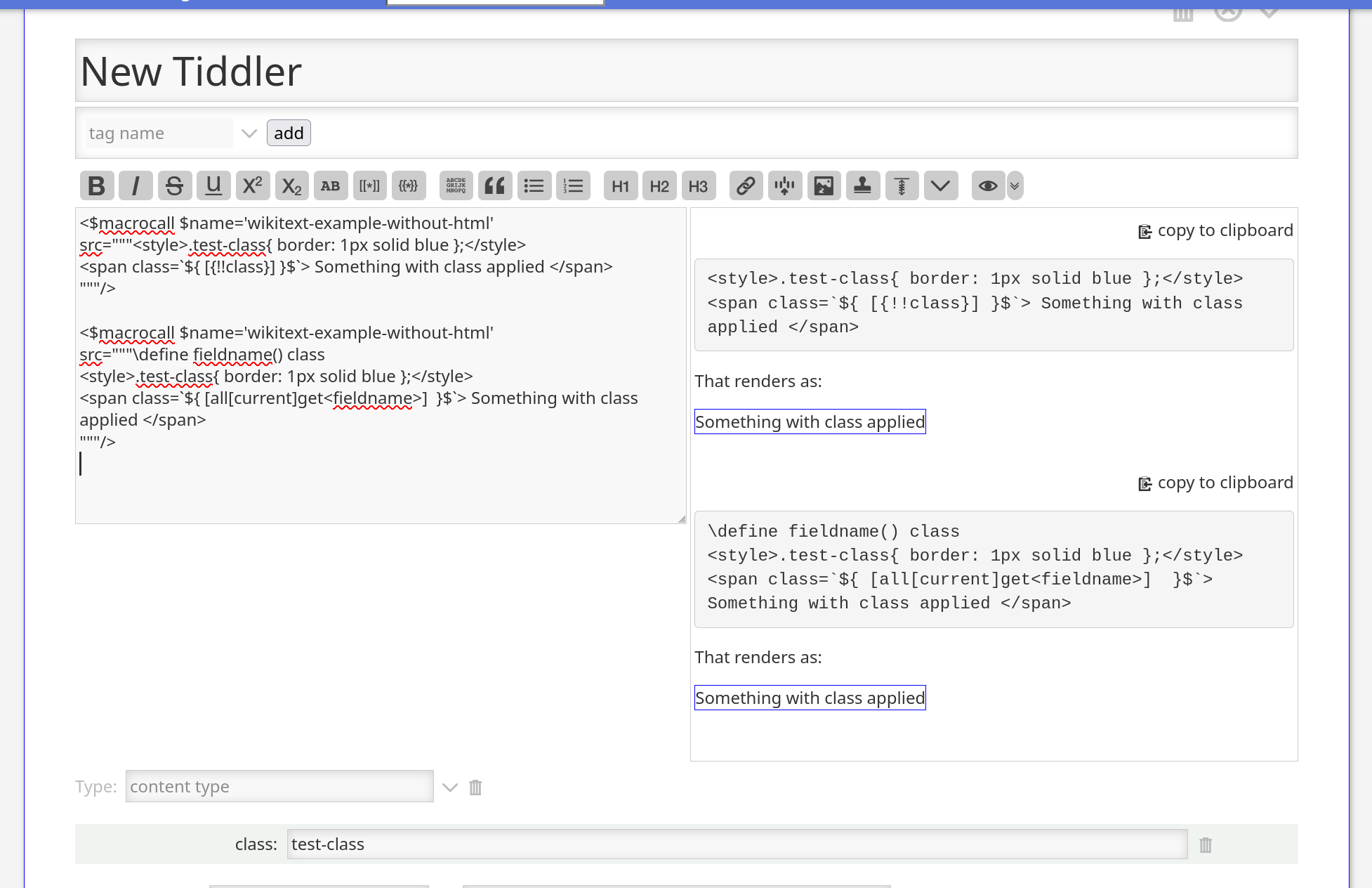 However I was wondering if this is a kind of custom method could the “Substituted attribute values” mechanism be extended to include transclusions “more directly” such as {{!!fieldname}} {{tiddlername}} etc…?