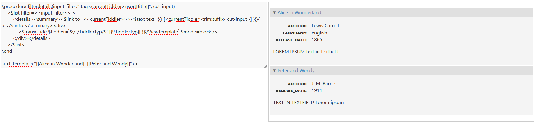 \procedure filterdetails(input-filter:"[tag<currentTiddler>nsort[title]]", cut-input)