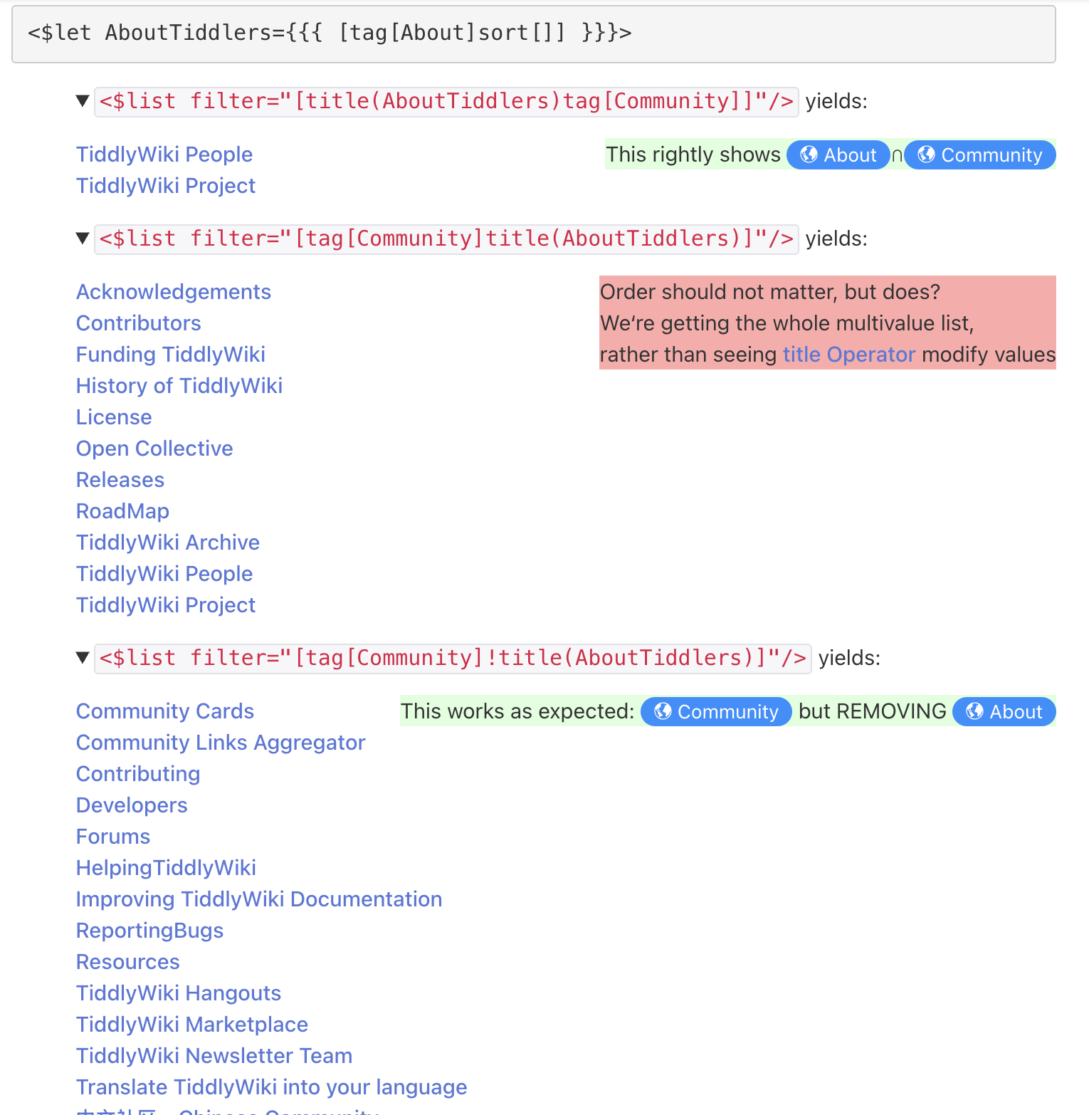 When I try the above on the preview site, I get Filter error: Missing [ in filter expression. If I change it to [my.function(multivaluedvarname),<anothervarname>,[a constant]] then I don’t get any error (displays all tiddler titles since my.function is undefined). Maybe the current code is only handling the parens syntax for the first argument?