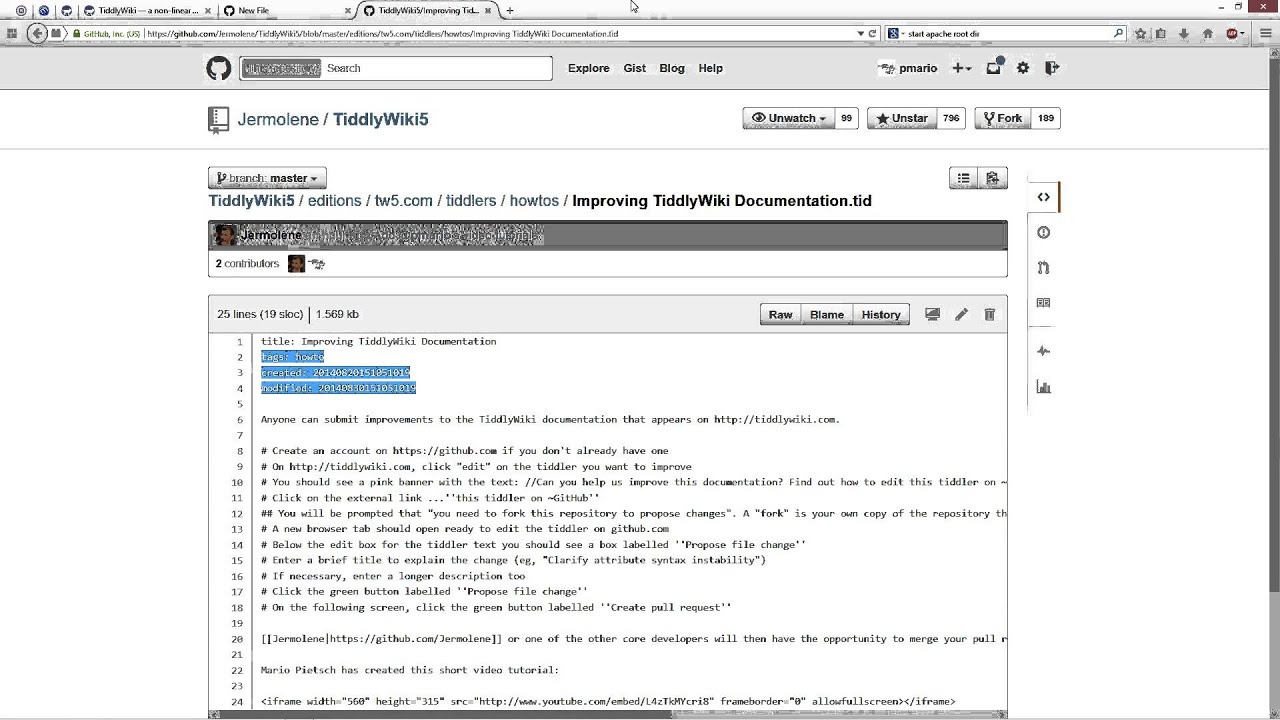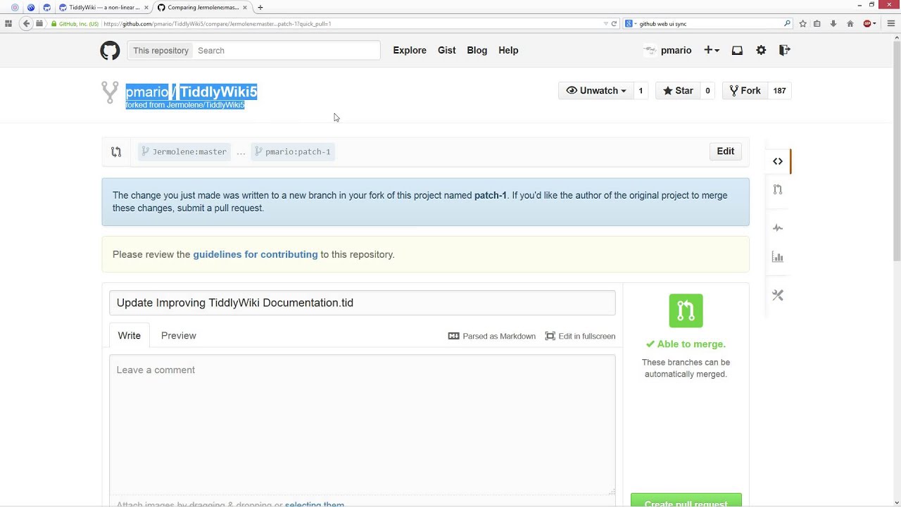 Making changes to tiddlywiki.com via GitHub and Pull Requests (PR)