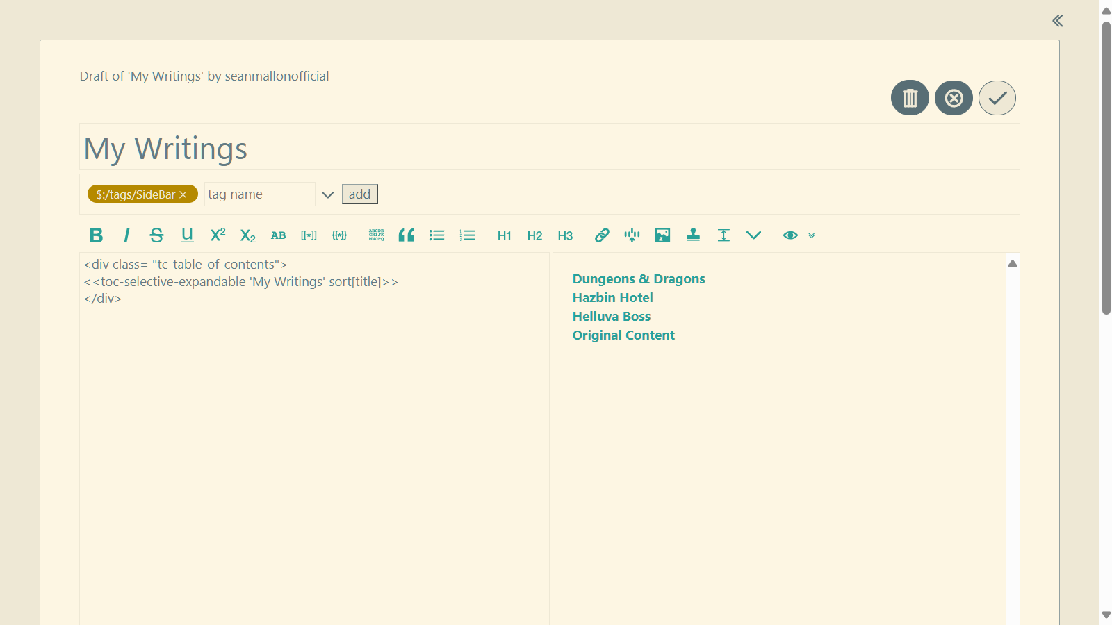 Now I would like to sort the TOC within each tab as an expandable tree type of list. This is where it get’s confusing for me as I got minimal programming experience.