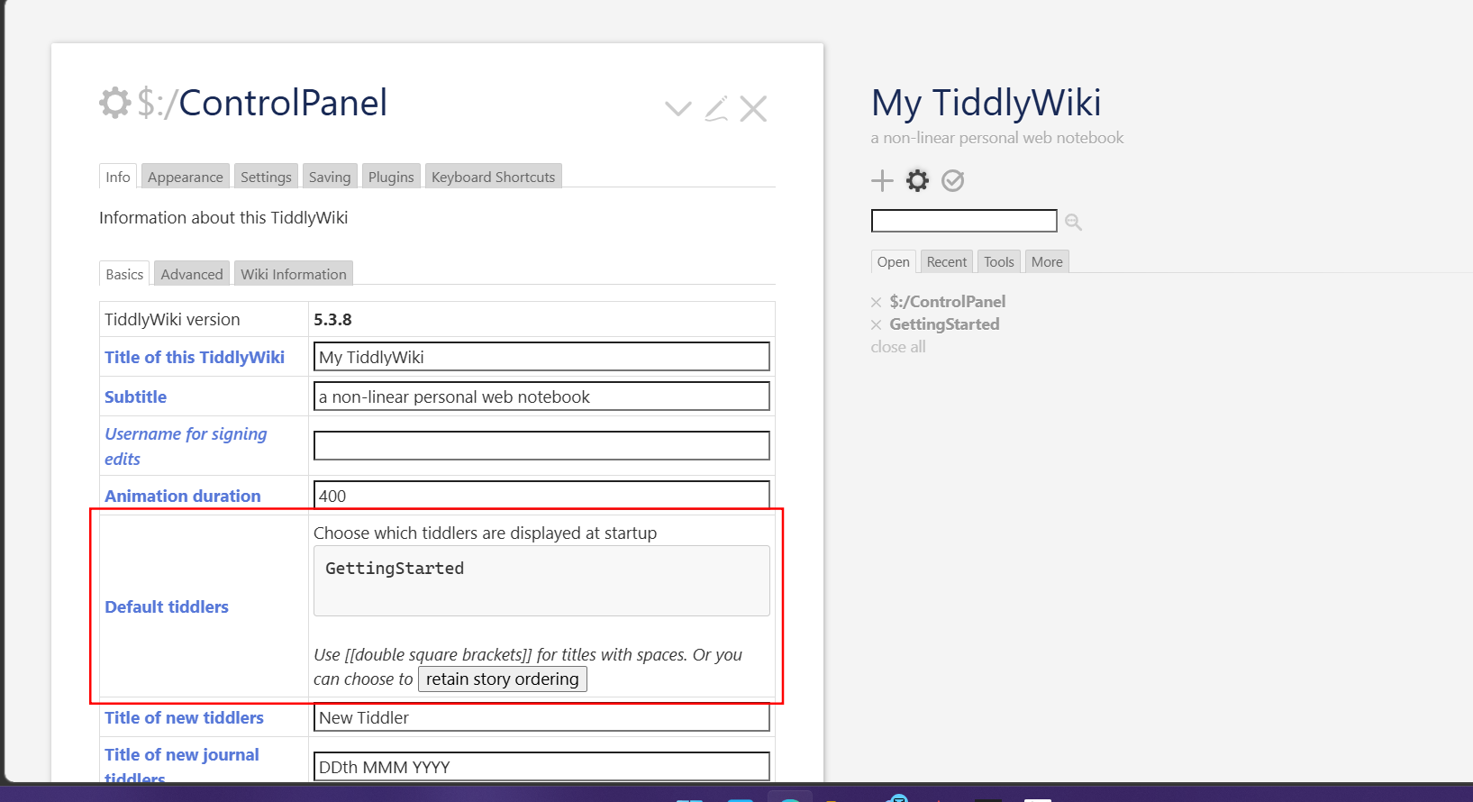 TiddlyWiki v5.3.8 — a non-linear personal web notebook