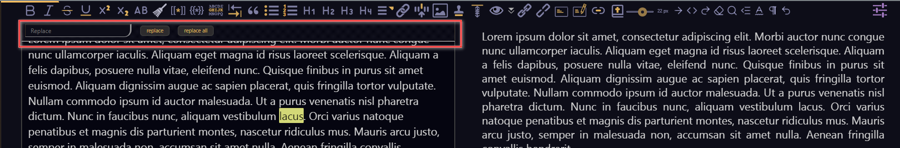 Press ctrl+F → 1rst line "search; 2nd line replace
