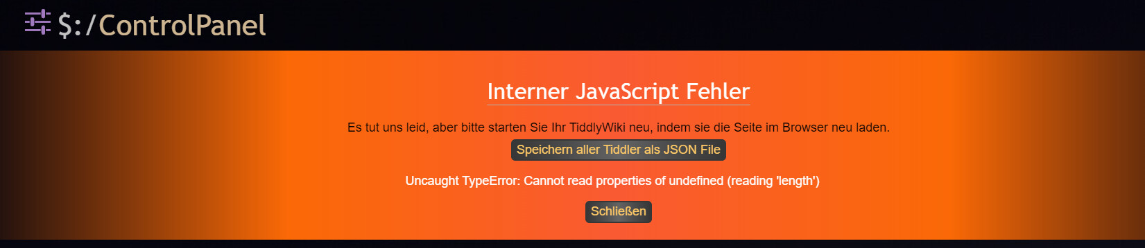 Opening a new tiddler will show this error: