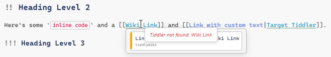 Things like link preview and navigating to tiddlers from edit mode are wild. I am wondering if there could be a way to bring the link preview into the viewTemplate with a simple tweak that makes use of your existing code? There may be other cases where the internal code makes sense to bring forward into the view template, optionally and perhaps in a dedicated plugin “Reuse codemirror6 code in the viewTemplates”.