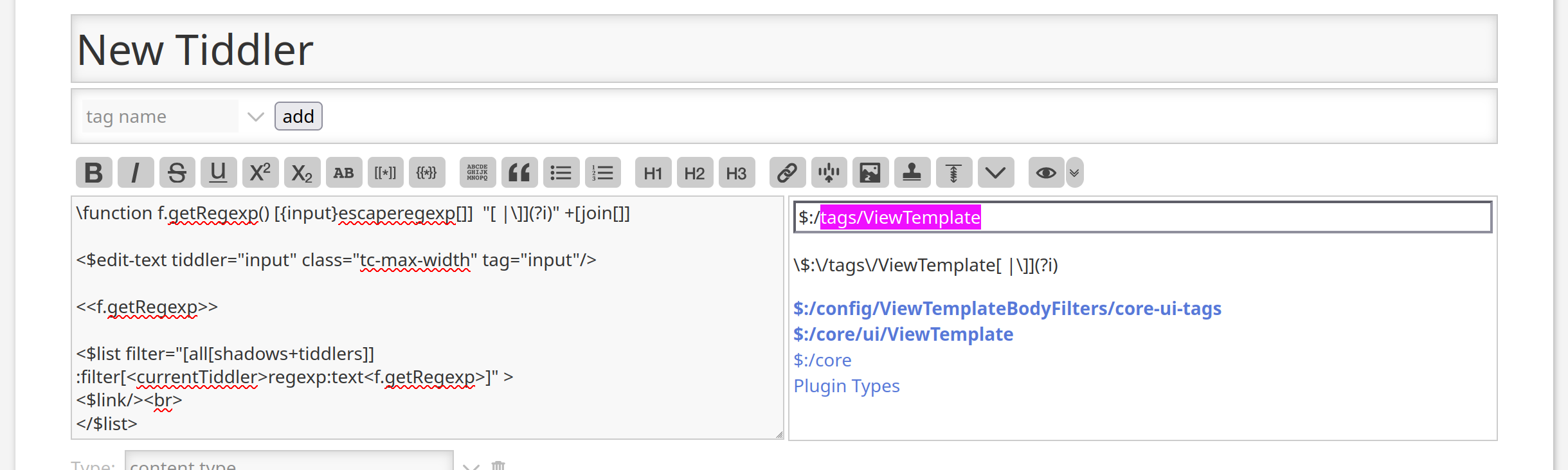 But now the question is how can we reliably construct a regular expression that can test for a variable title name and not when it is only part of the title. How can we detect where the string ends if we are permitted to use most characters in a tiddler title?