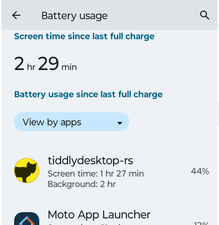 Keep in mind if you run little else while using tiddlywiki it will statistically dominate. The Percentage may be the percentage of “power used” not the percentage of “total power available”, ie of battery capacity.