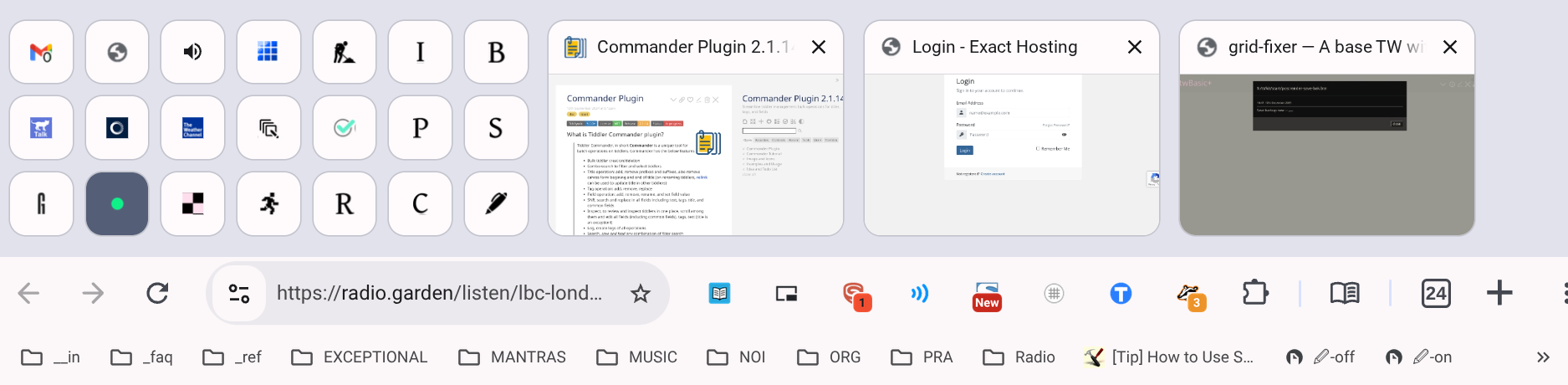@EricShulman thanks for this work, interestingly on my wide screen monitor, A Tiddlywiki layout that allowed a browser panel to the left or right of the story/side bar would be useful for meta window management. We could avoid the plethora of Browser tabs by bringing it “in house” to tiddlywiki. Ideally using the resizer widget recently developed to allow a draggable resize.