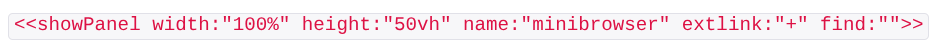 <<showPanel width:"..." height:"..." find="..." etc>>