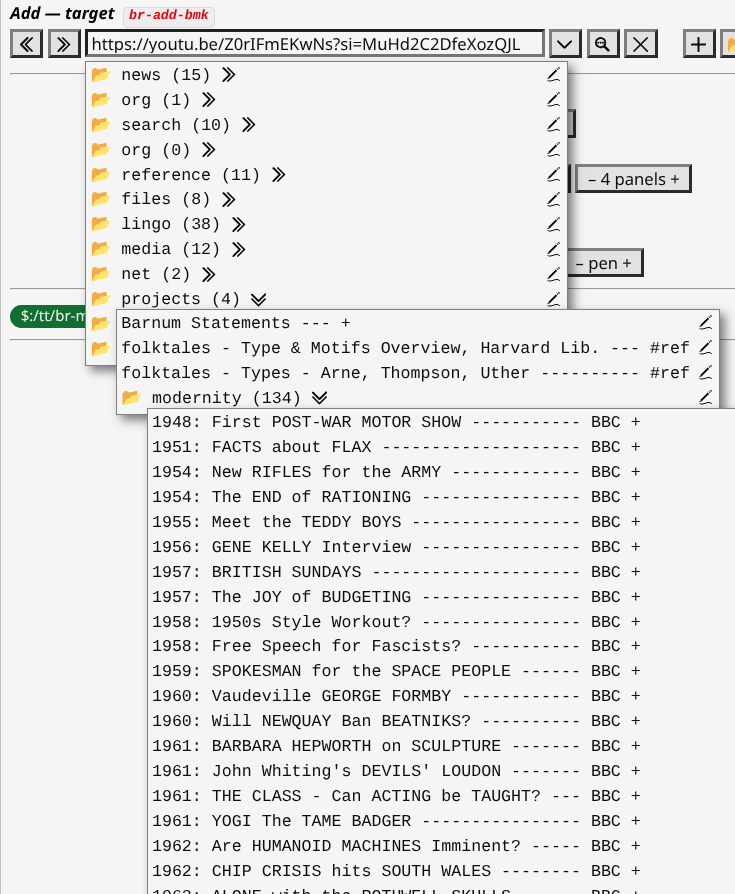 One showing how useful being able to transclude searches into Bookmark URLs is …