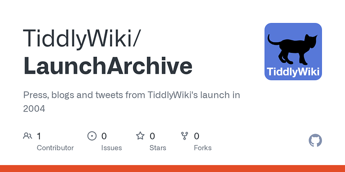 I’ve just created a new GitHub repository containing a raw archive of the coverage of TiddlyWiki from blogs, tweets, and podcasts when it was first launched in 2004.