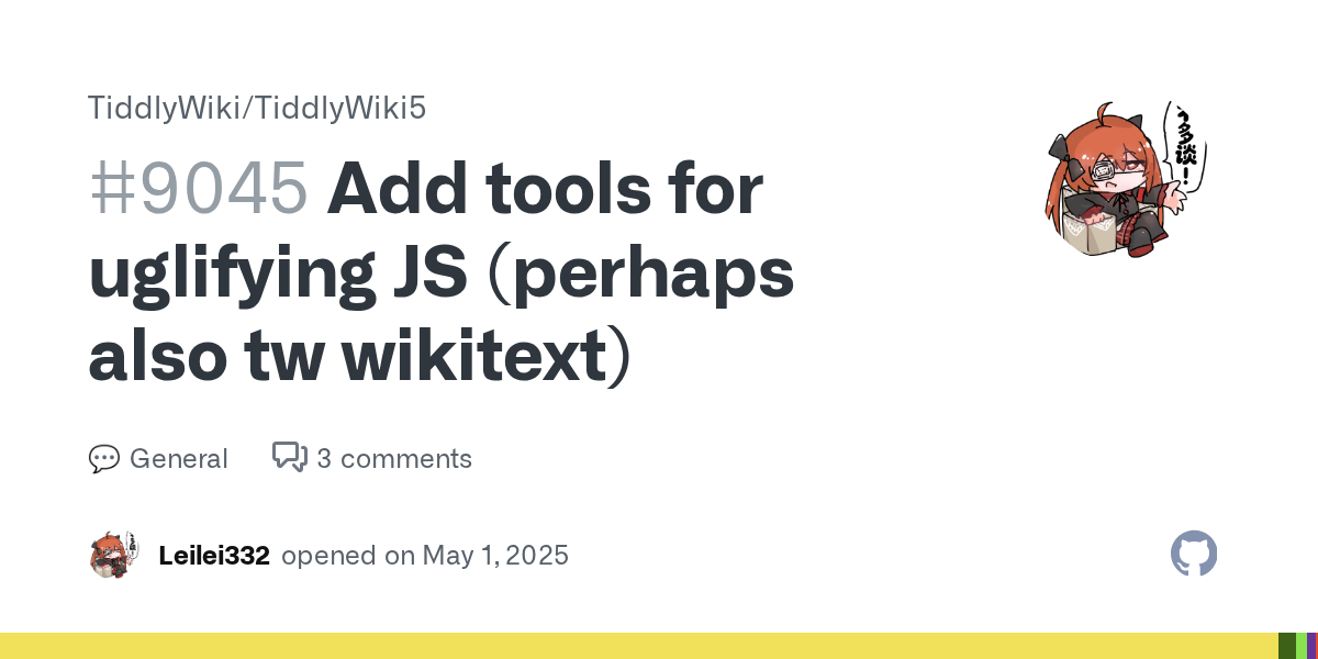 - [Updated 1st May] Adopting a more modern subset of JavaScript - Updating the JavaScript dialect & CSS features used by the TiddlyWiki core · Issue #7353 · TiddlyWiki/TiddlyWiki5 · GitHub