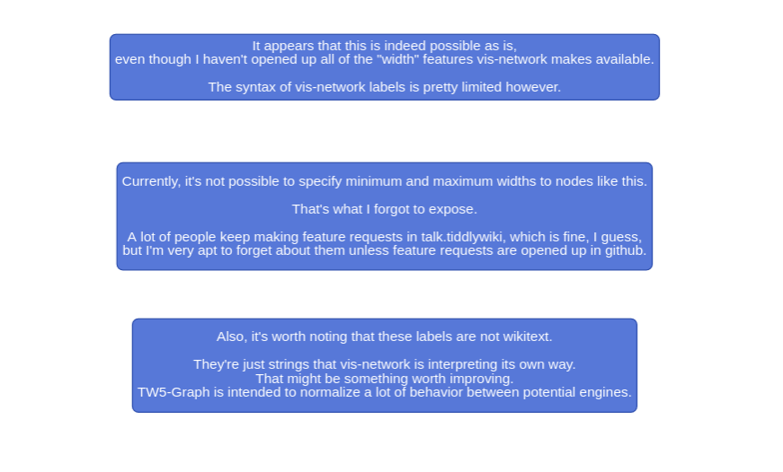 - TW5-Graph has prototype Mermaid support to show how graphs could be rendered as SVG instead of as html canvases. This feature could be elaborated if people wished…