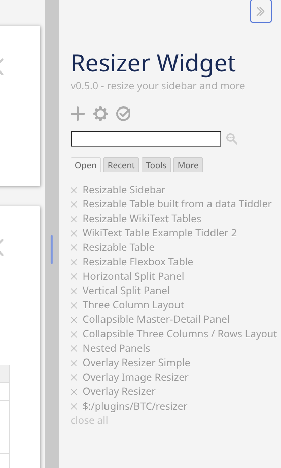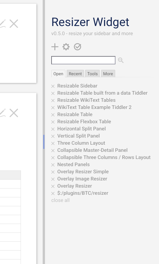 excel-column and tocharcode filter operatorsexcel-column converts any positive number to the corresponding Excel-style column format (like AA, AB, AKA)tocharcode converts a letter (or the first letter of a string) to the corresponding Javascript charcode (like “65” for “A”)resizable-table procedure if a dataTiddler attribute is passed to the procedure (and no wikitextTable attribute … the wikitextTable always wins