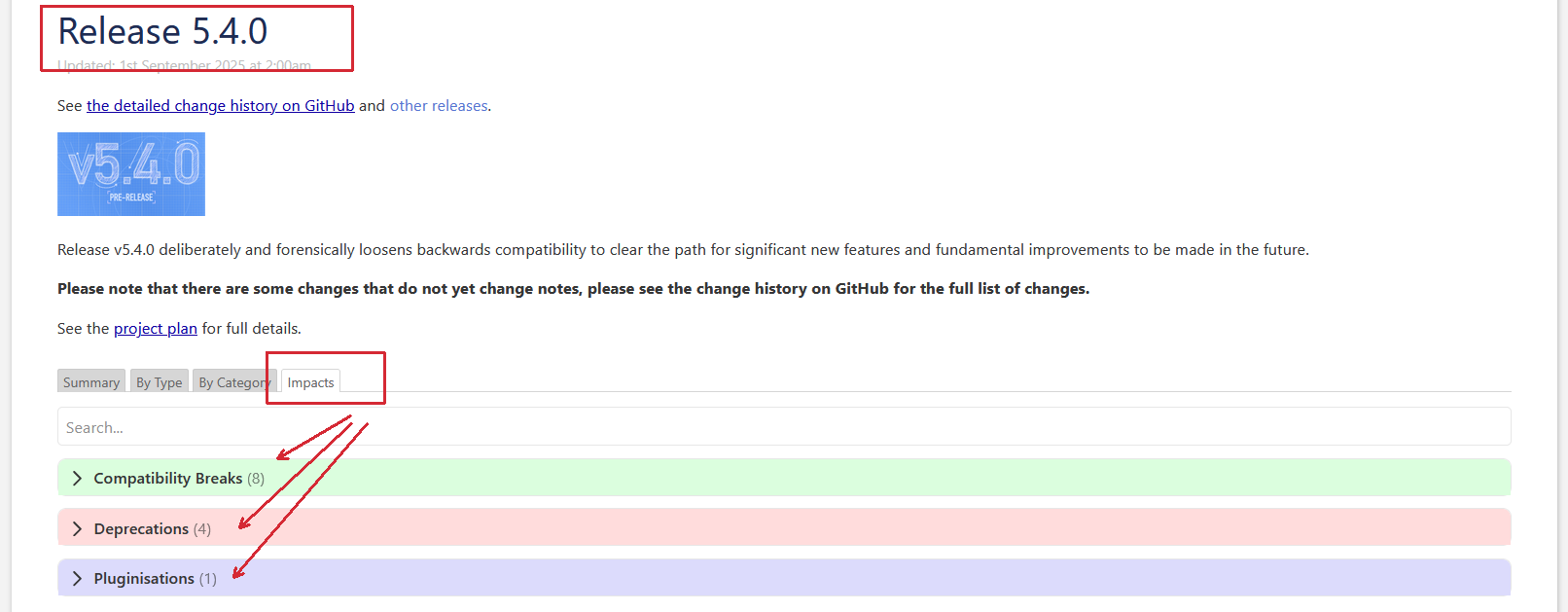 Especially important is the Impacts tab, since it documents incompatibilities and deprecations. That’s important to test with your 3rd party plugins.
